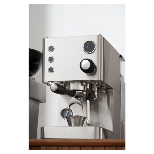 Wenn du eine Maschine suchst, die Espresso-Fans auf jedem Level begeistert, ist die AVX Hero X genau die richtige Wahl. Sie kombiniert einen Kaffeeboiler mit einem Dampf-Thermoblock, sodass du direkt nach dem Espresso Milch aufschäumen kannst. Die gesättigte Brühgruppe sorgt dabei für konstante Temperatur und präzise Extraktion dank PID-Steuerung.