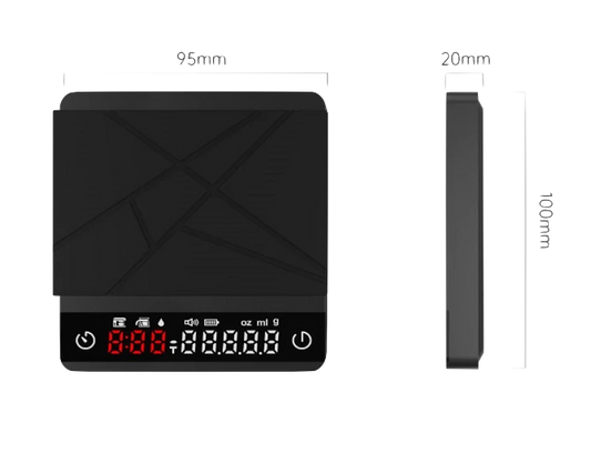 Mit der automatischen Tara- und Timerfunktion gelingt Ihnen jede Tasse Kaffee in gleichbleibender Qualität; die Waage unterstützt Sie dabei. Sie ist hochsensibel und misst präzise bis auf 0,1 g genau, mit einer maximalen Kapazität von 2 kg. Das helle LED-Display ist gut lesbar, und das robuste Aluminiumgehäuse sorgt für Langlebigkeit. Der Akku hat eine lange Laufzeit und lässt sich bei Bedarf einfach per USB-C aufladen.