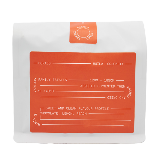 Dieser Kaffee wird von einer Kooperative in der Region Huila produziert, einem Projekt mehrerer Familienbetriebe. Die Kaffeebohnen werden von den Kaffeebauern sorgfältig ausgewählt, die ihr Wissen seit Generationen weitergeben. Nach der Ernte durchlaufen die Bohnen eine kurze aerobe Fermentation. Anschließend werden sie gewaschen und sonnengetrocknet. Das Ergebnis ist ein reiner, süßer Kaffee mit Noten von Schokolade und Pfirsich.
