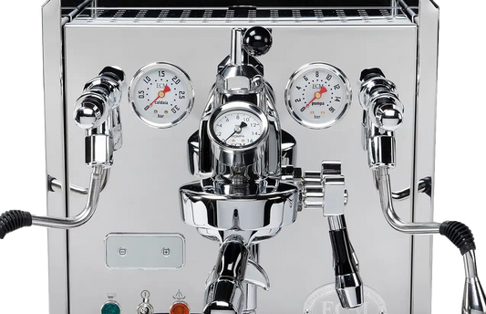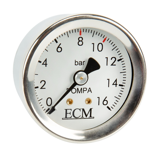 Das Set besteht aus Edelstahl, genau wie die obere Schraube der E61-Brüheinheit („Pilz“). Es enthält ein ECM-Manometer, das sich einfach an der Vorderseite der Brüheinheit anbringen lässt. So können Sie den Druck während des Brühvorgangs permanent überwachen. Das Durchflusskontrollset ist für alle ECM-Maschinen mit E61-Brüheinheit geeignet, unabhängig davon, ob sie mit einer Vibrations- oder einer Rotationspumpe ausgestattet sind.