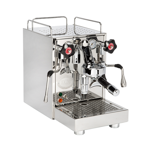 ECM vereint deutsche Präzision und italienisches Design in Espressomaschinen, die für Qualität, Zuverlässigkeit und zeitloses Stil stehen. Jede Maschine wird teilweise in Deutschland handgefertigt und ist auf Langlebigkeit ausgelegt. Das Besondere an ECM ist die firmeneigene E61-Brüheinheit, die für Temperaturstabilität und gleichbleibend guten Espresso sorgt.