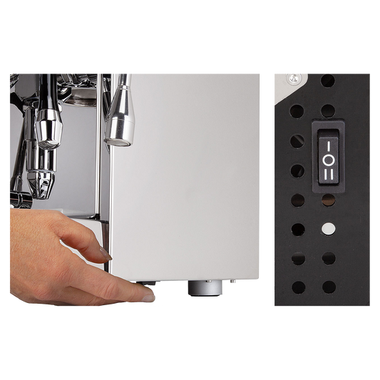 Die Vibrationspumpe bringt das Wasser sanft in Kontakt mit dem Kaffeebett. Die Wassertemperatur lässt sich mit dem PID-Schalter regulieren. Nach dem Aufheizen des Boilers schäumen Sie mit der Kaltwasser-Dampfdüse Milch zu einem weichen Schaum auf. Und mit der Heißwasserdüse lässt sich zwischendurch ganz einfach ein Americano oder Tee zubereiten. Praktischerweise können Sie mit diesem Modell gleichzeitig Kaffee zubereiten und Milch aufschäumen.