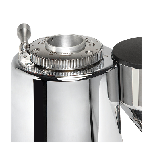 Sie suchen eine leistungsstarke und stilvolle Kaffeemühle, der Sie voll und ganz vertrauen können? Dann sind Sie bei uns genau richtig. ECM V-Titan 64 ist gut. Diese Mühle verfügt über 64 mm flache, titanbeschichtete Mahlscheiben, mit denen Sie im Handumdrehen mahlen können. Die Titanbeschichtung sorgt dafür, dass die Mahlscheiben länger scharf bleiben und sich weniger schnell erhitzen.