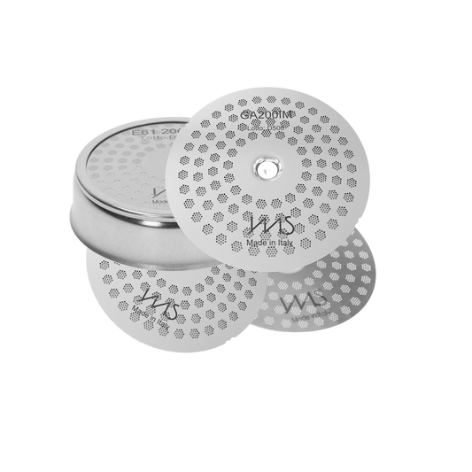 Die Siebe bestehen aus hochwertigem Edelstahl und verfügen über Mikroperforationen, die eine gleichmäßige und kontrollierte Wasserverteilung gewährleisten. So holen Sie das Beste aus Ihrem Kaffee heraus, egal ob Sie Hobby-Barista oder Profi sind.
