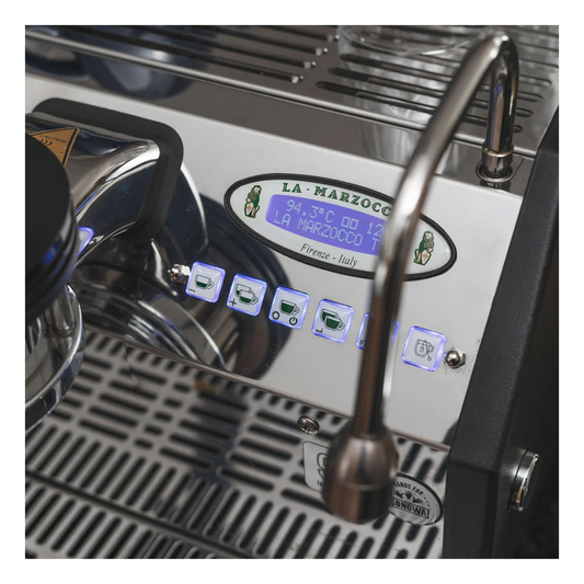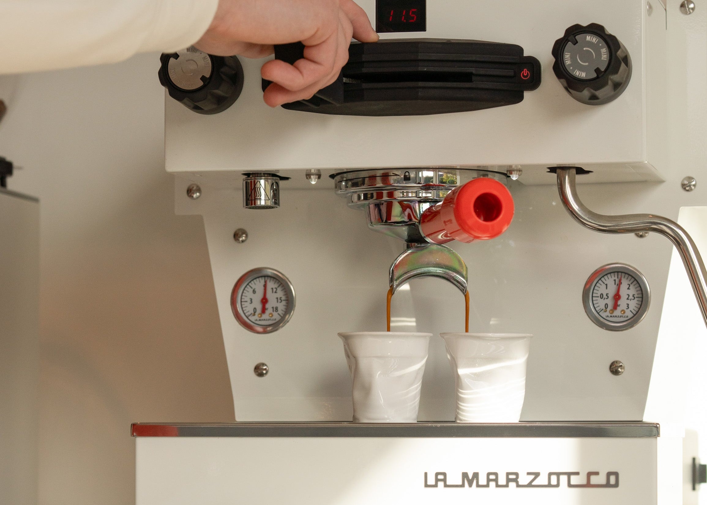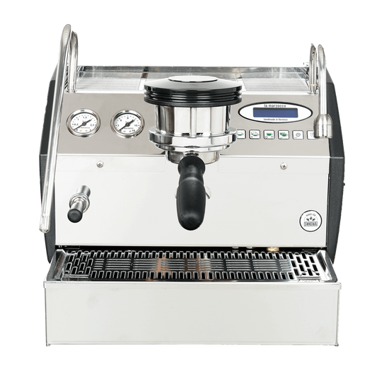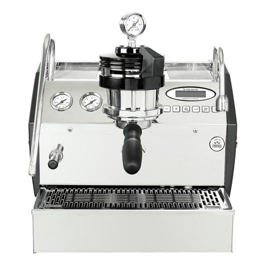 Die Verarbeitung ist ebenfalls hervorragend: Die Maschine besteht aus hochwertigen Materialien. Sie ist in Ihrer Wunschfarbe erhältlich. Interesse? Kontaktieren Sie uns. Das Joystick-Ventil ist benutzerfreundlich und langlebig. Ein weiterer Vorteil: Die Maschine wird standardmäßig mit einem kompletten La Marzocco-Set geliefert, inklusive Filterhalter, Stopfer, Milchkännchen, Filterkörben und mehr.
