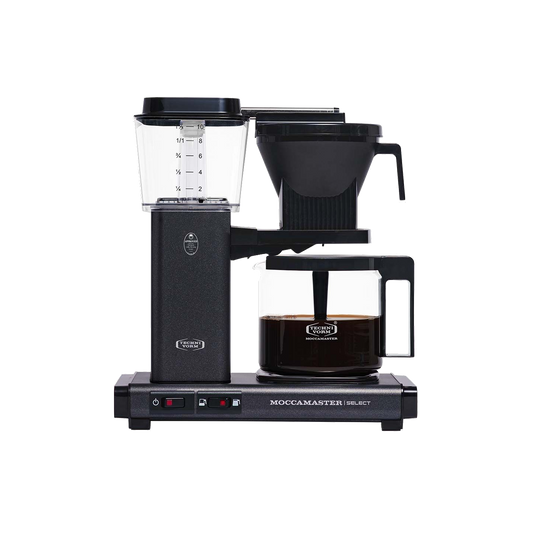 Die Moccamaster KBG Select ist eine Ikone. Seit 1968 wird diese Maschine in den Niederlanden in Handarbeit gefertigt, und diese Handwerkskunst schmeckt man in jeder Tasse. Das Schöne daran ist, dass man diesen Klassiker in Spezialitätenkaffeebars und sogar im Haus der Großeltern findet. Egal ob Sie nur ein paar Tassen oder eine ganze Kanne mit 1,25 Litern aufbrühen, Sie werden immer den vollen, ausgewogenen Geschmack genießen, für den Moccamaster bekannt ist.